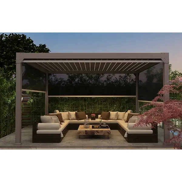 ప్రొఫెషనల్ గెజిబో తయారీదారుగా, మేము మా ఎలక్ట్రిక్ రిట్రాక్టబుల్ గెజిబోస్లో ఖచ్చితమైన డిజైన్ను పొందుపరుస్తాము, దిగుమతి చేసుకున్న సైలెంట్ మోటార్లు మరియు దాచిన డ్రైనేజ్ సిస్టమ్ను కలుపుతాము. ఇది మా గెజిబోలు మేధో నియంత్రణ, నిర్మాణ స్థిరత్వం మరియు వాతావరణ నిరోధకత యొక్క ప్రధాన లక్షణాలను కలిగి ఉన్నాయని నిర్ధారిస్తుంది, అదే సమయంలో పరిమాణం, రంగు మరియు ఫంక్షనల్ మాడ్యూల్ల వ్యక్తిగతీకరించిన అనుకూలీకరణకు మద్దతు ఇస్తుంది. వారు లైటింగ్ మరియు రోలర్ బ్లైండ్ల వంటి ఉపకరణాలను ఏకీకృతం చేయగలరు, విల్లా ప్రాంగణాలు, టెర్రస్లు మరియు వాణిజ్య విశ్రాంతి ప్రాంతాలు వంటి విభిన్న దృశ్యాలకు అనుగుణంగా, వివిధ బహిరంగ ప్రదేశాలకు స్మార్ట్ మరియు ఆచరణాత్మక విశ్రాంతి అనుభవాన్ని సృష్టిస్తారు.